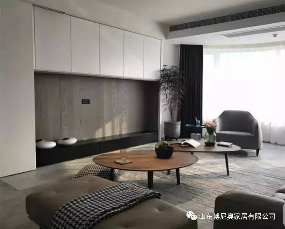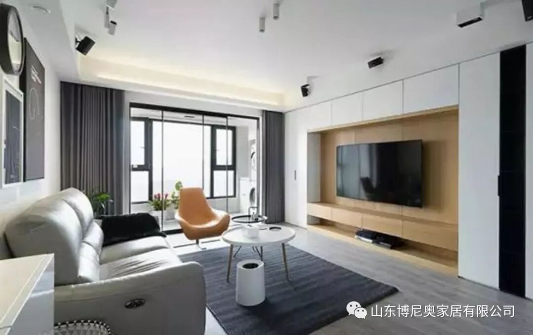 客廳是一個(gè)很適合小戶(hù)型做收納的地方,電視背景墻可以做嵌入式電視柜,沙發(fā)背景墻也可以改成嵌入式的書(shū)柜。
